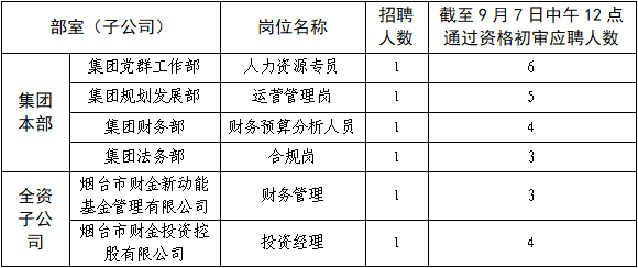 截至9月7日中午十二點(diǎn)(以報(bào)名郵箱簡歷收到時(shí)間為準(zhǔn)),崗位通過資格初審報(bào)名人數(shù)與崗位需求人數(shù)比例滿足最低3:1的比例要求,視為達(dá)到面試條件,第一批次面試崗位見下表: