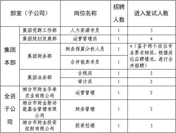 按照《2020年煙臺(tái)財(cái)金集團(tuán)面向“雙一流”和全球TOP200高校畢業(yè)生公開招聘簡章》工作安排,公司分別于9月9日、9月18日組織了兩個(gè)批次的初試,根據(jù)初試總體情況,經(jīng)研究決定,擬對(duì)部分崗位組織復(fù)試,現(xiàn)將有關(guān)事項(xiàng)公告如下: