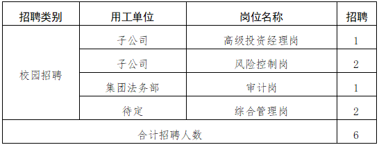 按照集團(tuán)實(shí)際用工需要,決定通過校園招聘部分崗位人才數(shù)名,具體事項(xiàng)公告如下: